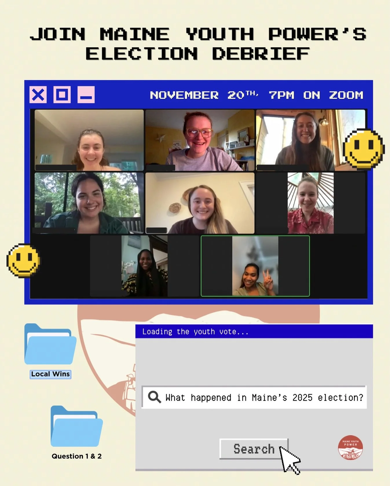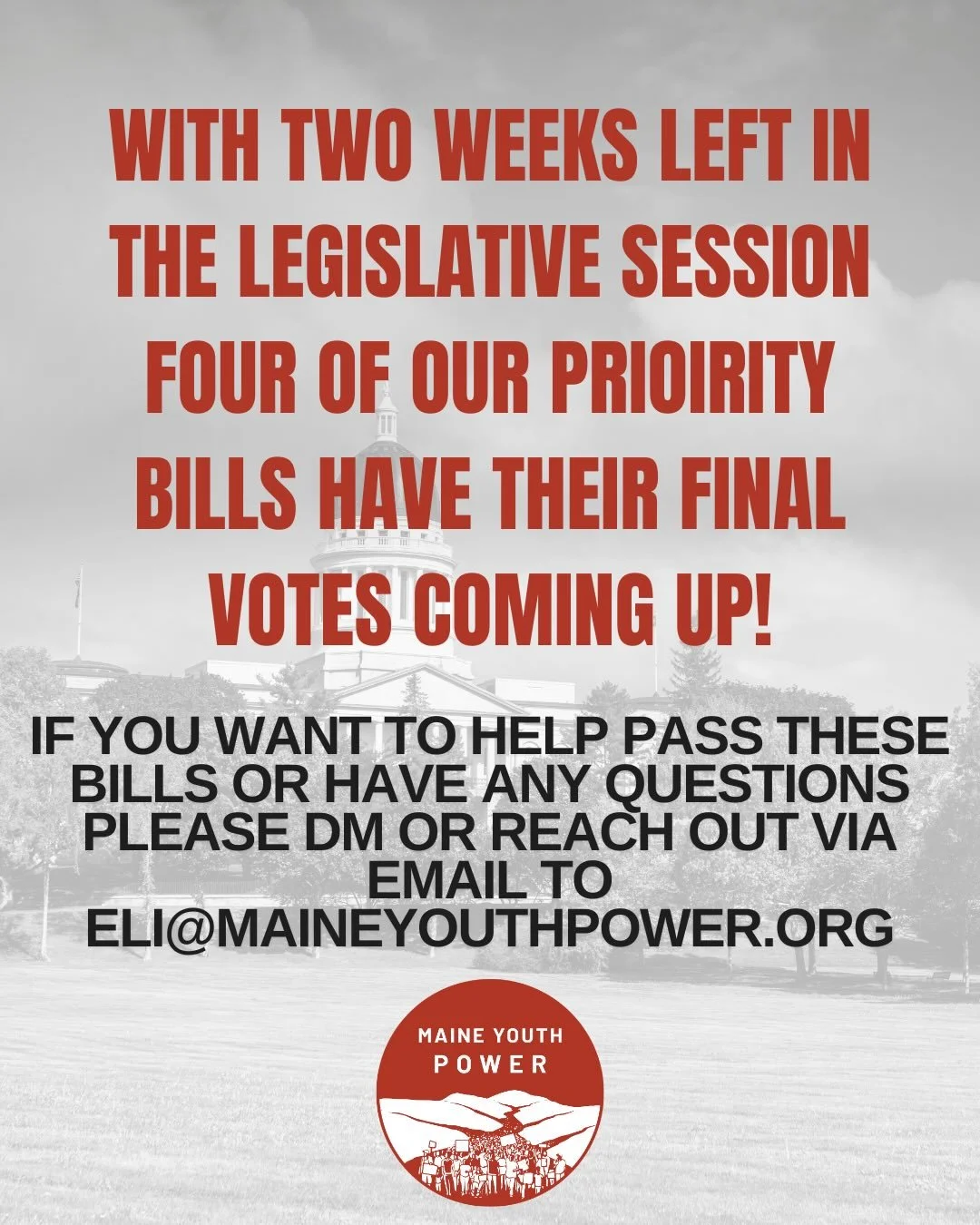 We channel youth power across Maine by making local wins, statewide victories, meaning we organize our communities for local campaigns and amplify our wins through media, our statewide network and policy writing across the state!